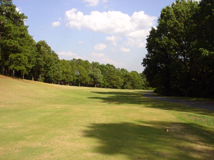 This dogleg right par 5 with OB on right can be reached in 2 if the tee shot favors the right side. A long tee shot that does not bend right can go through the fairway into a wooded ravine. It's almost as easy to birdie this par 5 laying up in front of the traps as it is to go for it in two and there is definitely less risk of trouble. |