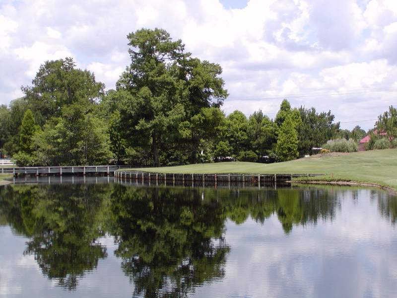 This is a good test of iron play for there is little room for error. Anything to the left is wet. Obviously anything short is in the drink also. But a long shot or one that does not stick is also going to find water. This can be seen on the right picture - Looking Back". |